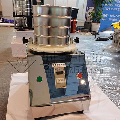 通过振动电机带动上部振动盘振动,再通过振动盘传导至安放在振动盘上部Φ200筛框上,然后由需要检测目数的筛框把小于筛网孔径的物料颗粒筛分至下层筛框,如此层层筛选,使每层试验筛内只留相同粒度的物料,达到不同粒度的分离并确定此物料的粒度组成,使Φ200型筛框中的物料能非常有效的起到过滤、分级、筛分目的。