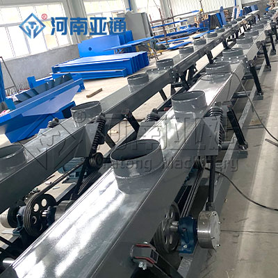 长距离振动输送机,也叫做耐高温振动输送机、板簧输送机,是依靠固定在料槽上的两台振动电机作为激振动源,运用自同步原理,两台振动电机反向转动,使料槽产生直线振动,将料槽中的物料从入料口快速输送到出料口。可以用来输送块状、颗粒状或粉状、常温或高温(300°以下)的各种物料,输送距离较长时可用多台输送机连接起来输送。广泛应用于矿山、冶金、建材、煤炭、化工、粮食、医药等行业。